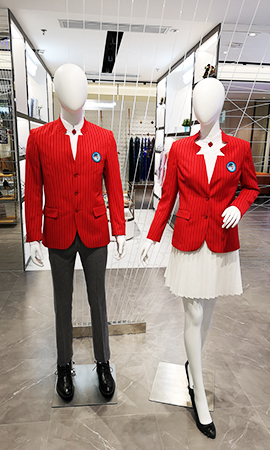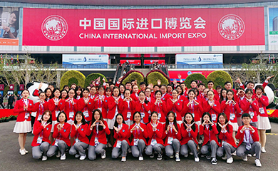2018年11月第一屆中國國際進口博覽會,一套紅色志愿者服裝尤為引人注目。五星造型中式領口點綴四葉草紐扣別致新穎,中國紅上裝搭配灰、白色褲裙明快鮮亮,筆挺的西服、靈動的裙擺、精致的工藝,彰顯著志愿者的專業(yè)、熱情、與活潑。而這些,正是由上服智源成衣為志愿者量身打造的。